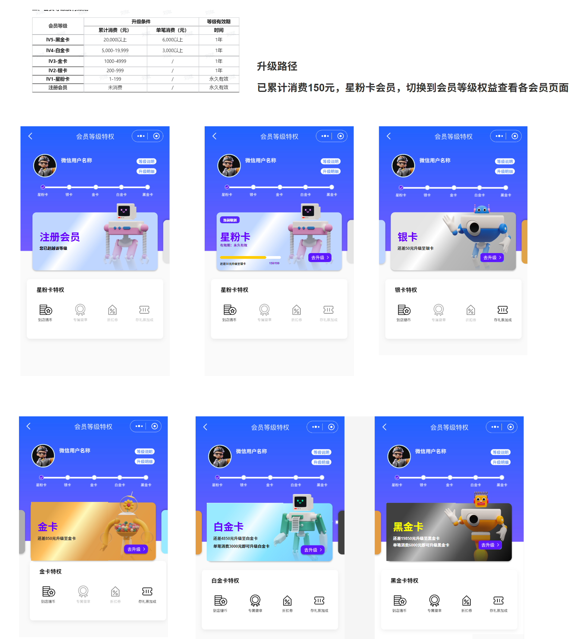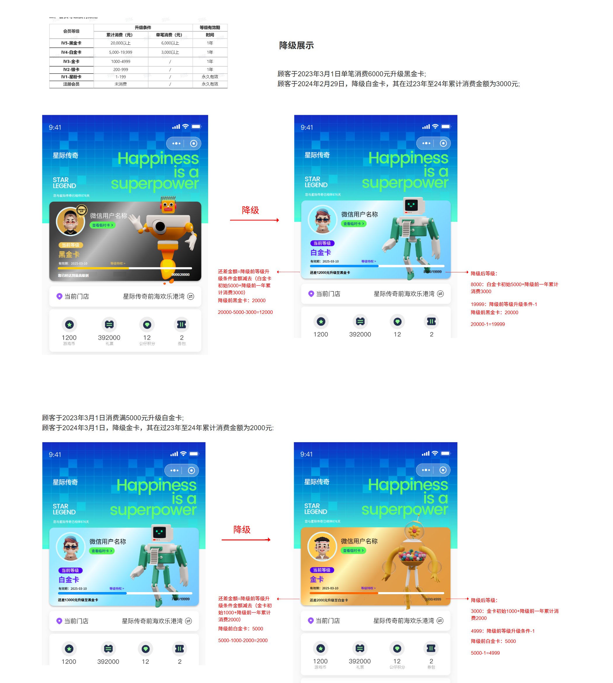 **1、小程序会员等级展示说明,查看等级路径**     **2、会员等级降级页面展示说明**