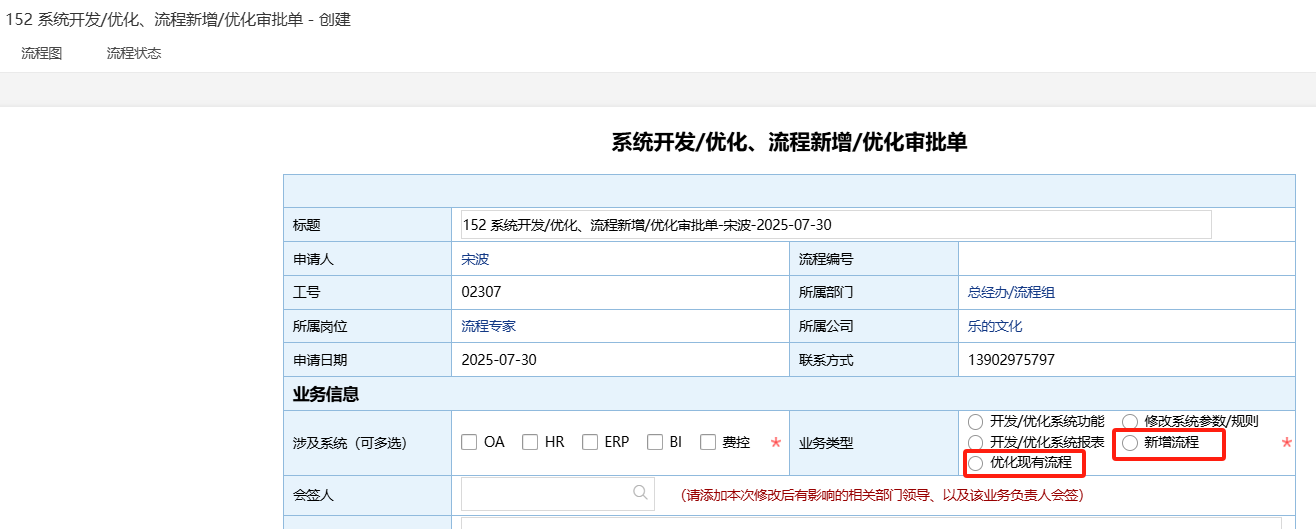 ### 新增/优化流程的梳理 1. 流程组发起的新建流程:由流程组输出表单内容和审批流,提交评审,并添加相关业务的负责人会签。 1. 业务部门发起的流程:需要由业务部门添加相关联的部门负责人评审,到流程组后,流程组根据需求输出表单内容和审批流,并给申请人确认,如果发现已审批的缺少审批,可以在此节点添加会签。 3. OA单据到运维进行配置,参与IT对方案系统配置的讨论。配置完成后,流程组先在测试系统测试,测试完成后,重要流程交由申请人部门验收,验收通过上到OA。 4. 流程组整理流程发布通知,发布到OA的通知公告栏。 #### 流程内容简介: [【附件】2025/08/13/流程内容简介.xlsx](https://picgo.melands.cn/file/2025/08/13/%E6%B5%81%E7%A8%8B%E5%86%85%E5%AE%B9%E7%AE%80%E4%BB%8B.xlsx) #### 提供给运维的方案举例:   #### 新增和优化流程,提交的OA单据  如下两个节点到流程组,007A到流程组输出方案,011A到流程组对配置后的流程测试验收  #### 流程上线后,在OA通知公告栏发上线通知,一些重要流程做培训视频放在云学堂上 [【附件】2025/08/19/通知发送操作指导.pdf](https://picgo.melands.cn/file/2025/08/19/%E9%80%9A%E7%9F%A5%E5%8F%91%E9%80%81%E6%93%8D%E4%BD%9C%E6%8C%87%E5%AF%BC.pdf)
